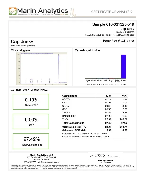- Total Cannabinoid Contents: 27.42%