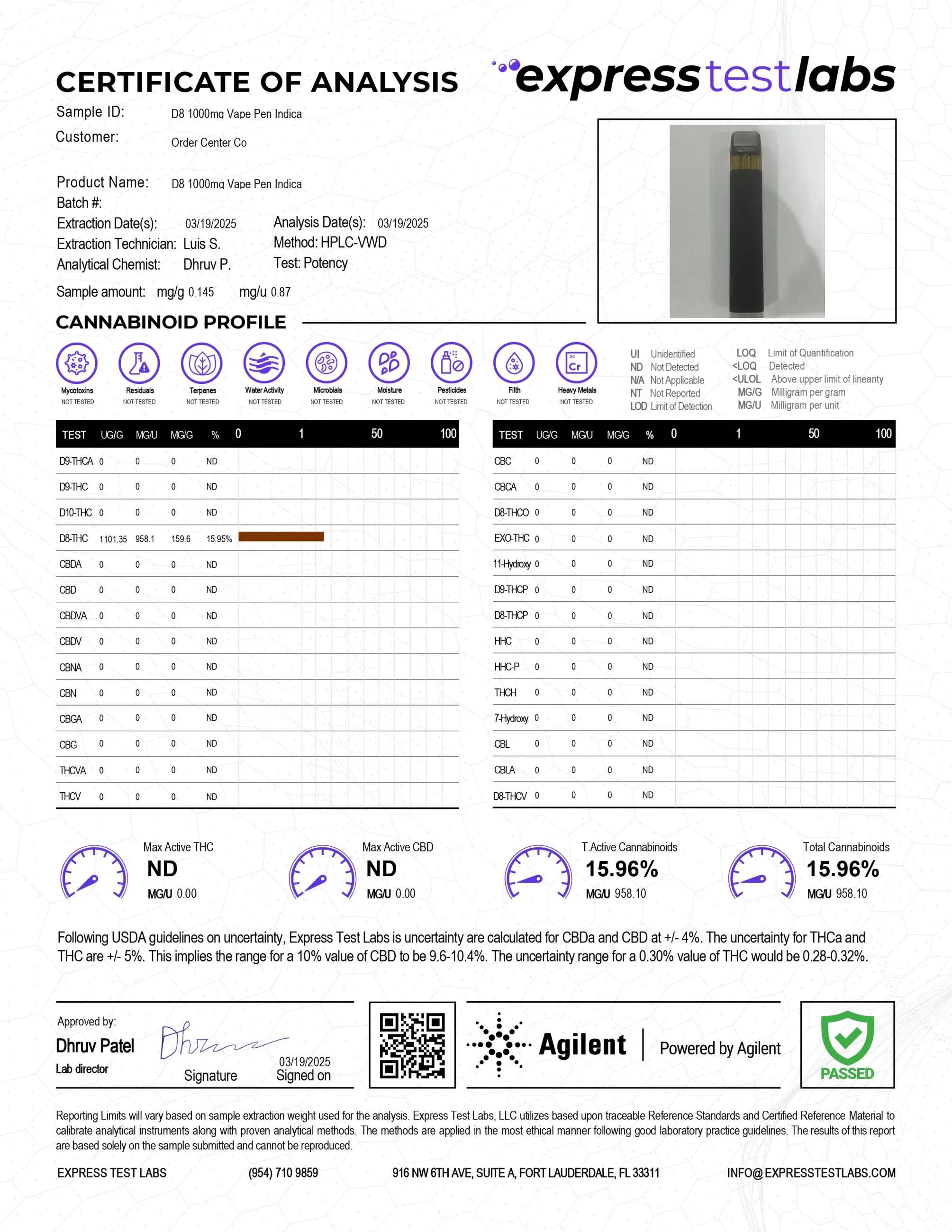 1000mg Delta 8 Vape Pen - Pineapple Express - Hybrid - 1ml: Hemp Extract and Natural Terpenes.